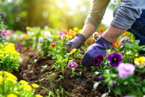 A gardener planting flowers