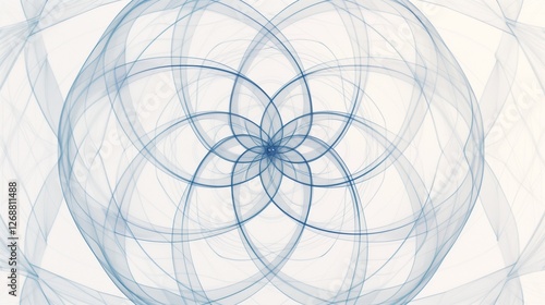 A geometric line art design featuring concentric circles and radiating lines, creating a hypnotic pattern on a white backdrop.