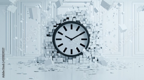 A giant clock with digital pixels falling like sand, symbolizing time and ethics in the digital age, subtle movement in the pixels, muted background, thought-provoking ambiance,