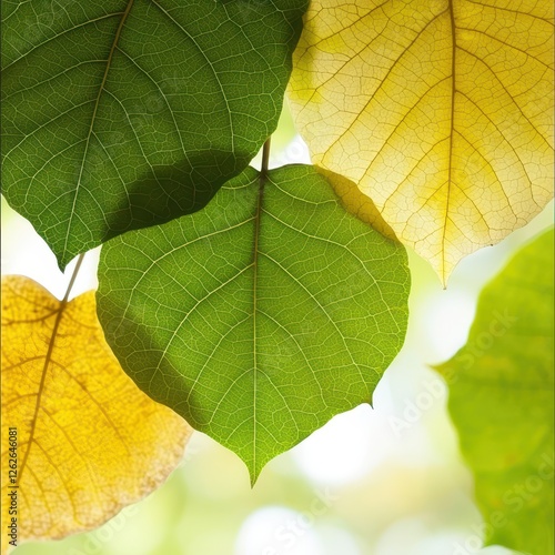 A giant leaf forest where each leaf glows with unique hues, [fantasy], [dreamlike], [soft light], [intricate]