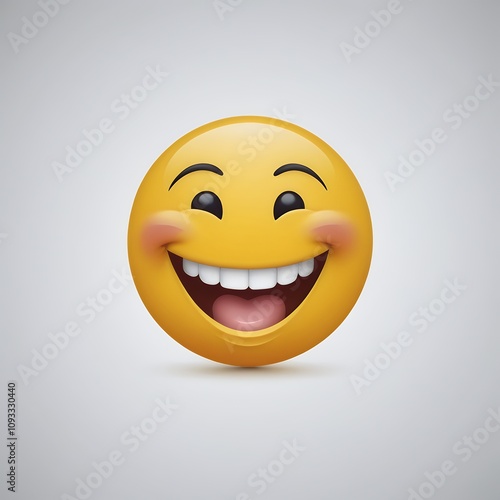 A Giggle-Inducing 3D Render of a Joyful Emoji: A Vibrant Yellow Smiley Face with Wide Open Mouth and Sparkling White Teeth, Conveying Unbridled Happiness and Positive Emotions