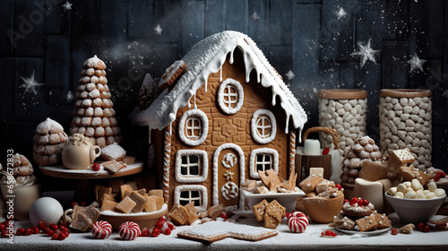 A Gingerbread House in a Winter Wonderland: A Sweet and Festive Scene,christmas gingerbread house,gingerbread house with christmas decoration