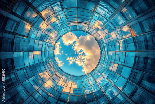 A glass dome revealing a clear blue sky.