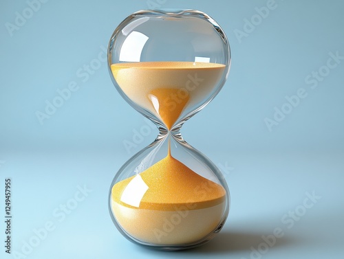 A glass hourglass filled with golden sand, symbolizing the passage of time.
