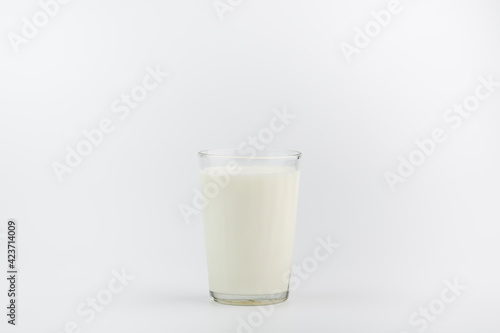 A glass of milk on a white background