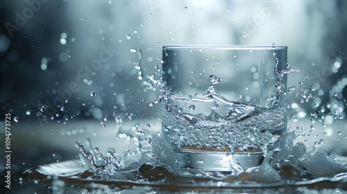 A glass of water splashing, capturing the beauty of fluid motion and clarity.