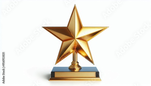 A gleaming golden star award trophy stands tall on a black base, symbolizing success, achievement, excellence, recognition, and honor. The star's sharp points reach towards the sky, representing ambit