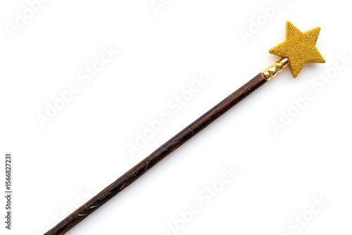 A Glittering Golden Star Topped Magic Wand With A Dark Brown Sparkly Handle On A White Background Creating A Whimsical And Enchanting Aura