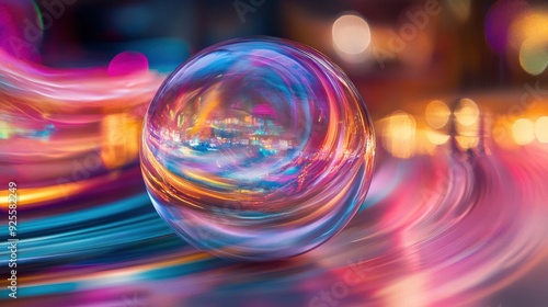 A globe glass Scene, flowing colors and light trails, symbolizing the flexibility and adaptability of cloud technology.