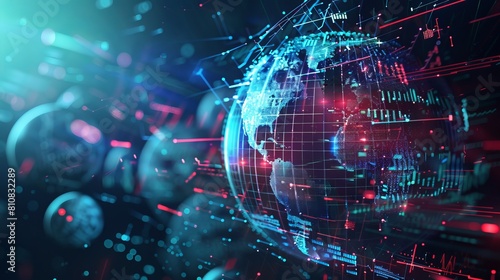 a globe radiates with digital energy, signifying the interconnectedness of businesses worldwide. Surrounding the globe,