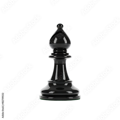 A Glossy Black Chess Bishop Piece Isolated on a Plain Black Background With Subtle Lighting Reflections