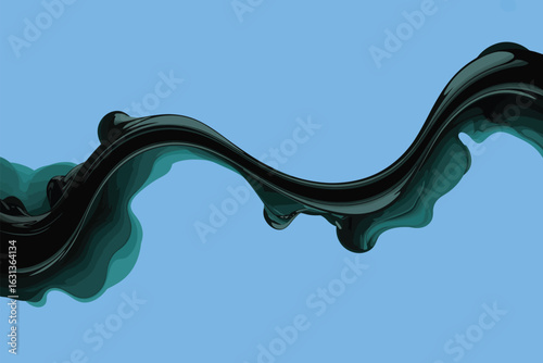 A glossy dark teal wave against a light blue background creating an abstract fluid art design look