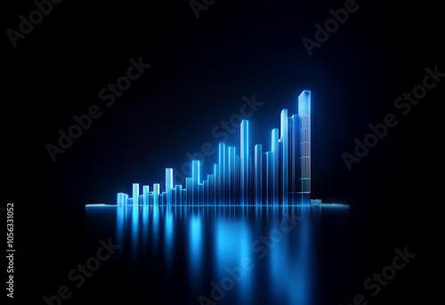 A glowing blue line graph on a black background with a reflection in the foreground.
