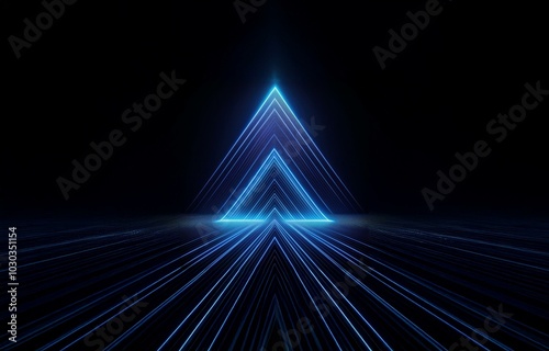 A glowing blue triangle outlined in neon lines sits on a dark, textured background.