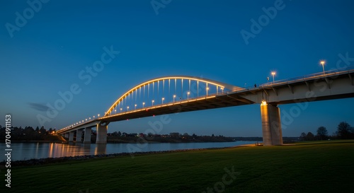 A glowing bridge connecting sky and ground, symbol of harmony.