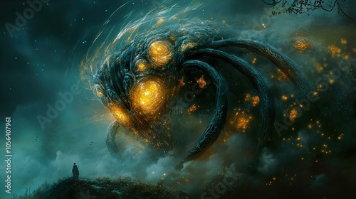A Glowing Creature in the Night Sky - A Surreal Fantasy Artwork