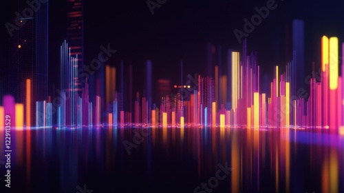 A glowing D bar graph representing rising financial trends and analytics.