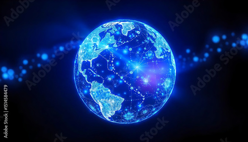A glowing digital representation of planet Earth, interconnected with bright lines