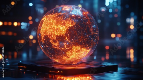 A glowing digital sphere with intricate connections, symbolizing futuristic technology and global connectivity.
