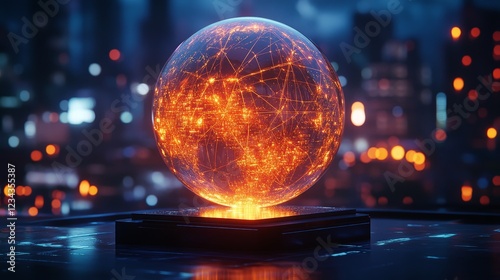 A glowing digital sphere with intricate connections, symbolizing futuristic technology and global connectivity.
