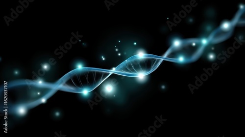 A glowing DNA double helix against a dark background, symbolizing genetics, biology, and the complexity of life.