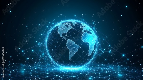 A glowing earth with intricate digital lines connecting continents, showcasing global communication networks, set against a dark background.