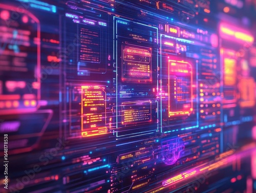 A glowing hologram of a job board with floating vacancy cards, sharp details, sleek and modern, vibrant lighting