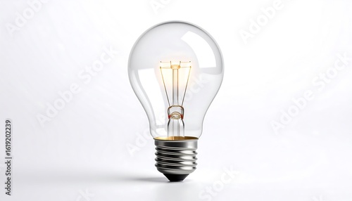 A glowing lightbulb radiating innovation against a clean white backdrop in clear glass
