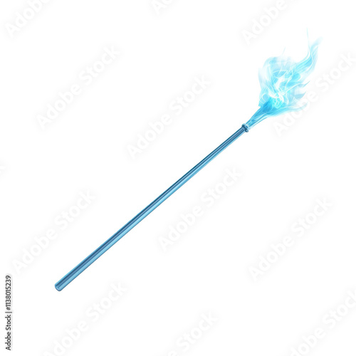 A glowing magical wand emitting blue flames, perfect for fantasy illustrations. transparent background.