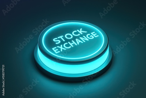 A glowing neon blue button with the words "STOCK EXCHANGE" inscribed on it, symbolizes the digital finance and trading world.