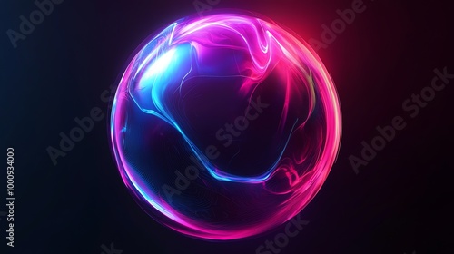 A glowing orb with blue and pink energy swirling inside on a dark background.