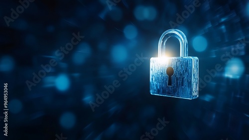 A glowing padlock symbolizes digital security and protection in a futuristic blue background, representing confidentiality and safety.