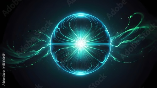 A glowing plasma energy sphere with fluid motion and bright blue-green hues.