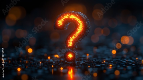 A glowing question mark made of particles, symbolizing inquiry and curiosity.