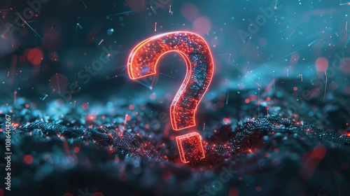 A glowing red question mark stands out against a dark, textured background with a blue hue.