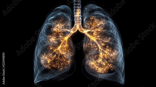 A glowing X-ray view of human lungs with radiant swirling light patterns
