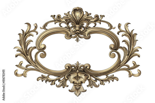 A gold frame with a floral design sits on a white background. The frame is ornate and intricate, with a sense of elegance and sophistication