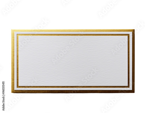 A gold frame with a white background. Rectangular white paper frame with gold border. Isolated on transparent background