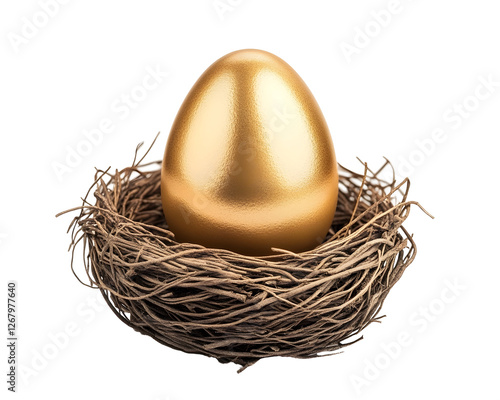 A golden egg in a nest, symbolizing financial security, investment, and savings.