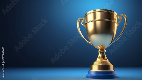 A golden trophy isolated on a blue background, symbolizing achievement and success