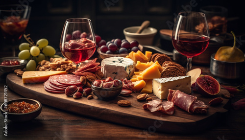A gourmet buffet of French and Italian culture, wine, and food generated by AI