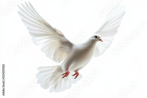 A graceful white dove takes flight against a soft, luminous background symbolizing peace and freedom isolated on transparent background