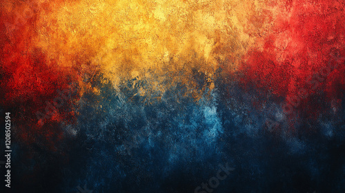 A grainy red orange yellow blue vibrant dark gradient banner symbolizing chaos energy transformation intensity passion creativity emotions dynamic transitions atmospheric abstract textures