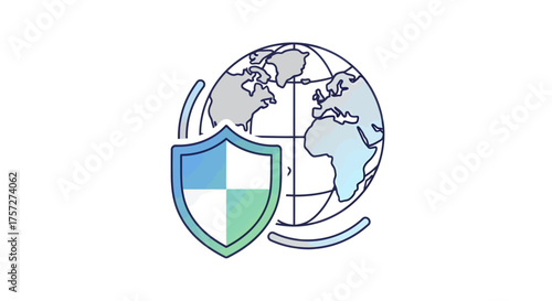 A graphic illustration depicting a shield protecting a globe, symbolizing global security and data protection.