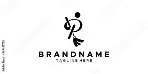 a graphic image themed P cleaning service, white background. vector graphic base.