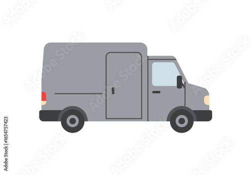 A gray box truck is depicted in a cartoonlike simplified style