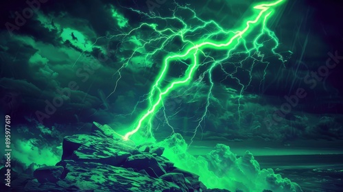 A green lightning bolt striking a jagged rock representing pain and envy