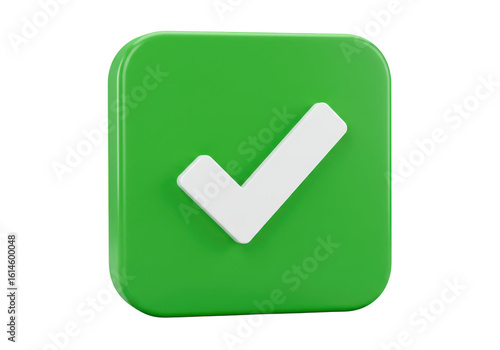 A green square with a white checkmark symbol isolated on a transparent background