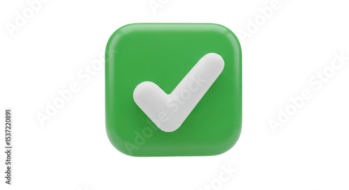 A green square with rounded corners and a white check mark in the center of the square shape on transparent background