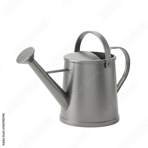 A grey metal watering can isolated on transparent background